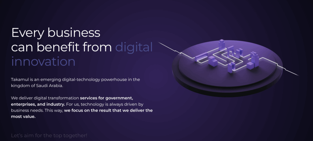Takamul is a long-standing Saudi company offering a wide range of digital services: web and app development, IoT, system integration, and DevOps. What makes them stand out is their involvement in large-scale national projects. They’ve developed digital platforms for events like Ramadan Season and Al Janadriyah Festival, and have worked with major energy and cultural organizations across the Kingdom.