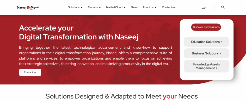Naseej is one of the largest and oldest IT service providers in Saudi Arabia. They’ve worked with government, education, and large enterprises to deliver portals, campus systems, and knowledge platforms. Their experience in large-scale implementation makes them ideal for more complex or regulated industries.