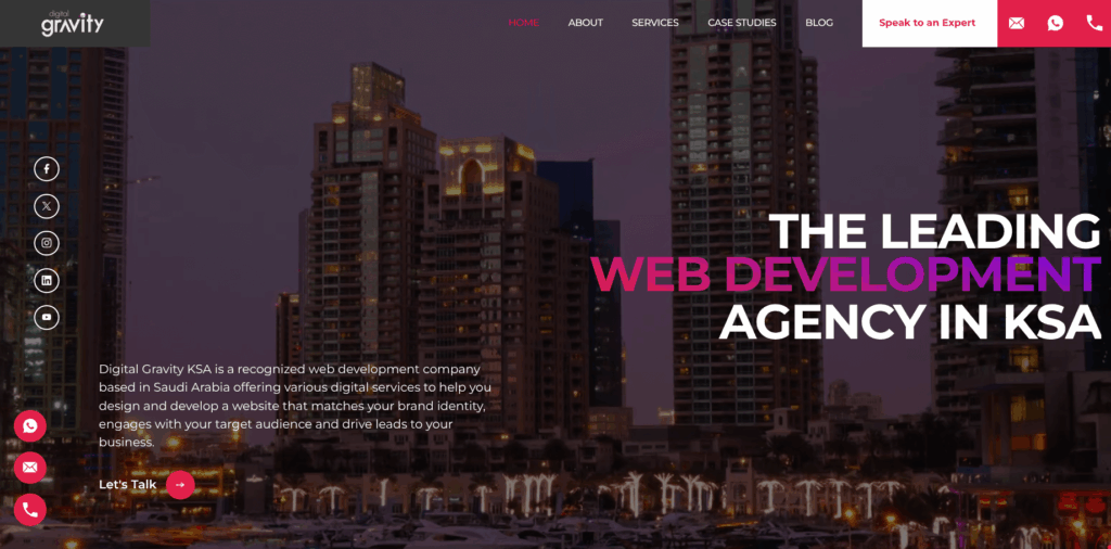 Digital Gravity KSA is a web and digital agency based in Riyadh that builds websites, mobile apps, and e-commerce platforms. They also offer services like branding, digital media marketing, and custom software development. Their team helps businesses in Saudi Arabia create strong digital experiences that look good and work well across all devices.
